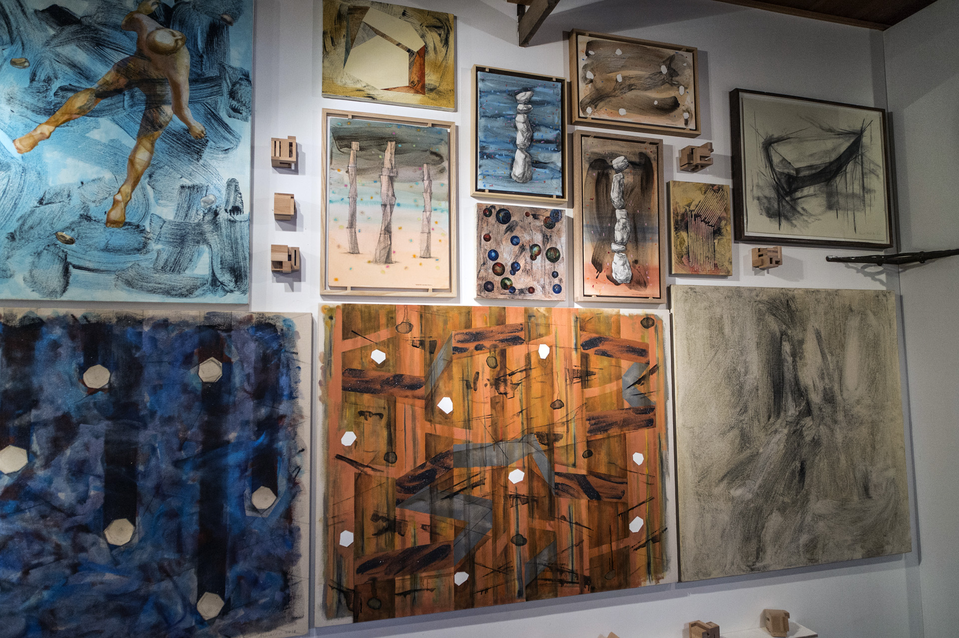 飯綱東高原に制作の場を移し、野山を歩きながら枝や石を拾う再起動に伴う、曲折の半世紀の自身の生そのものを振り返る時間は、頓挫や戒めの過去を掬いあげる過ごしとなり、関心の衰えない史的事象を顧みて幾度も繰り返した分析的な認識を修復しつつ、意識の屈託を愉しむ風情の大らかな整理となりました。