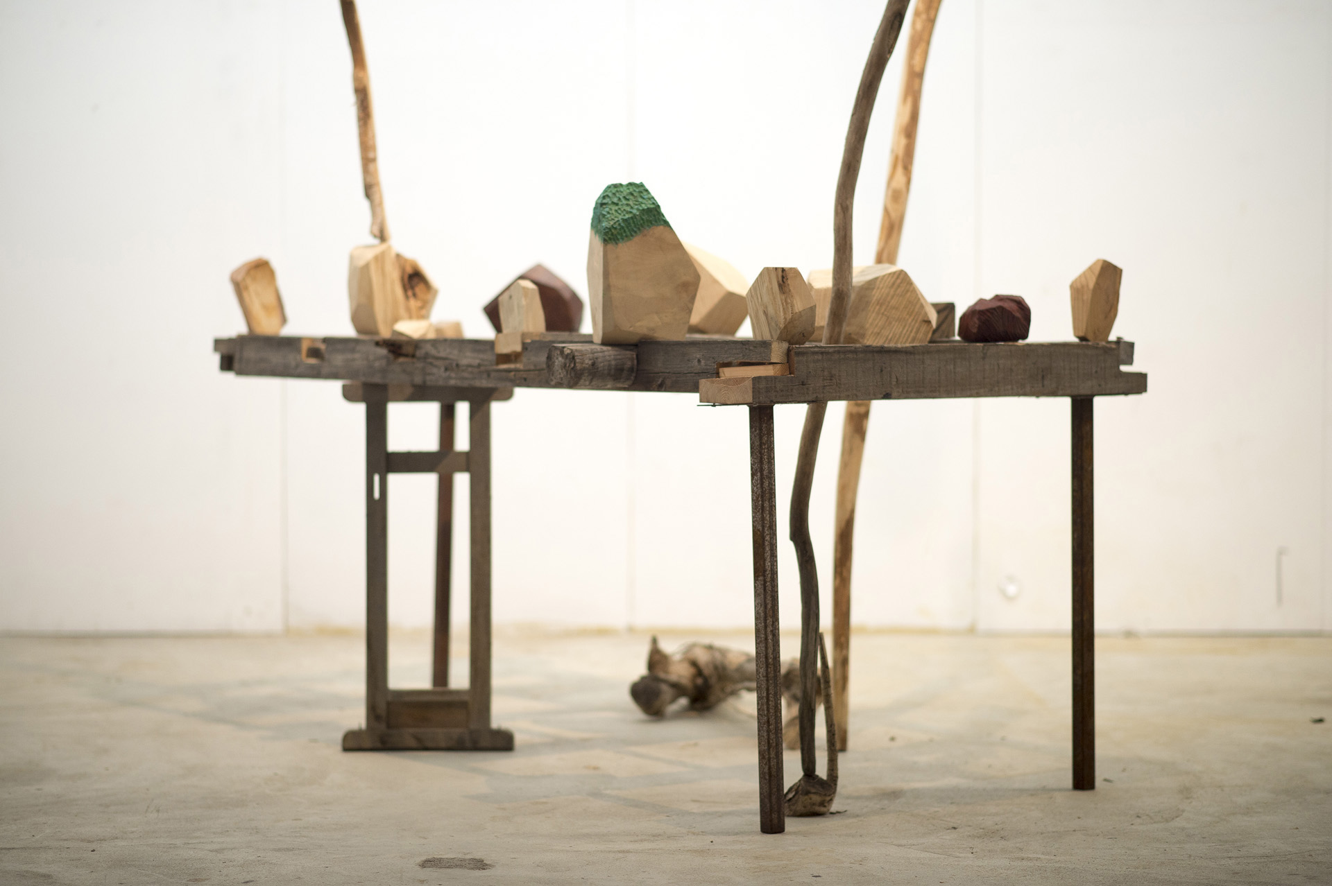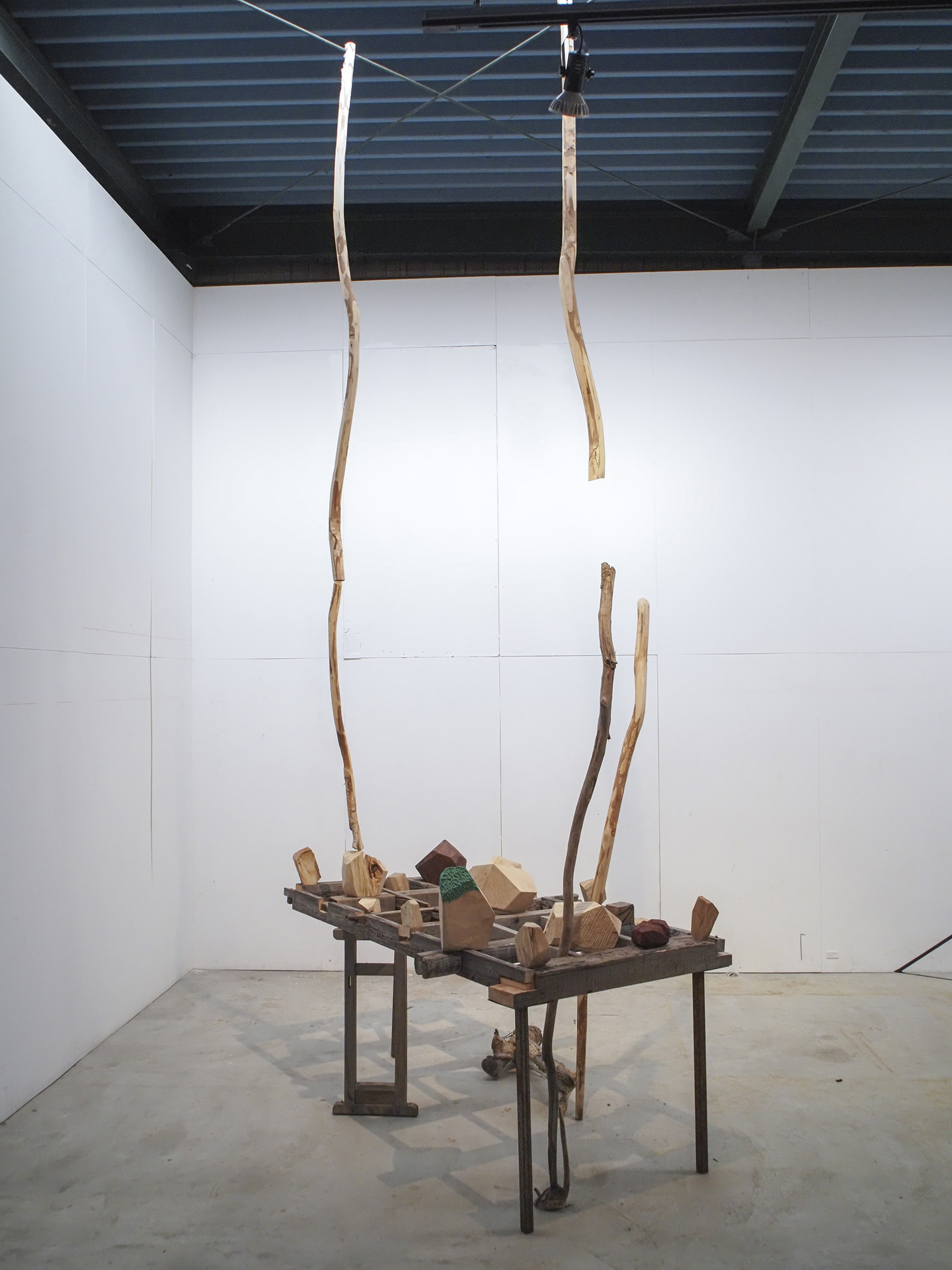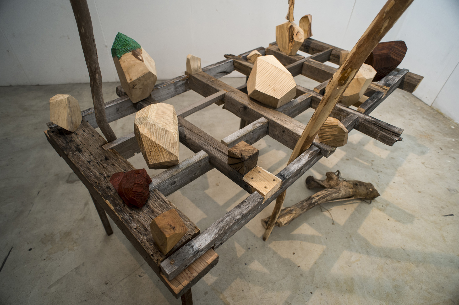 白樺、古材、アクリル絵具、FlatFileモリヤコウジ制作基盤
