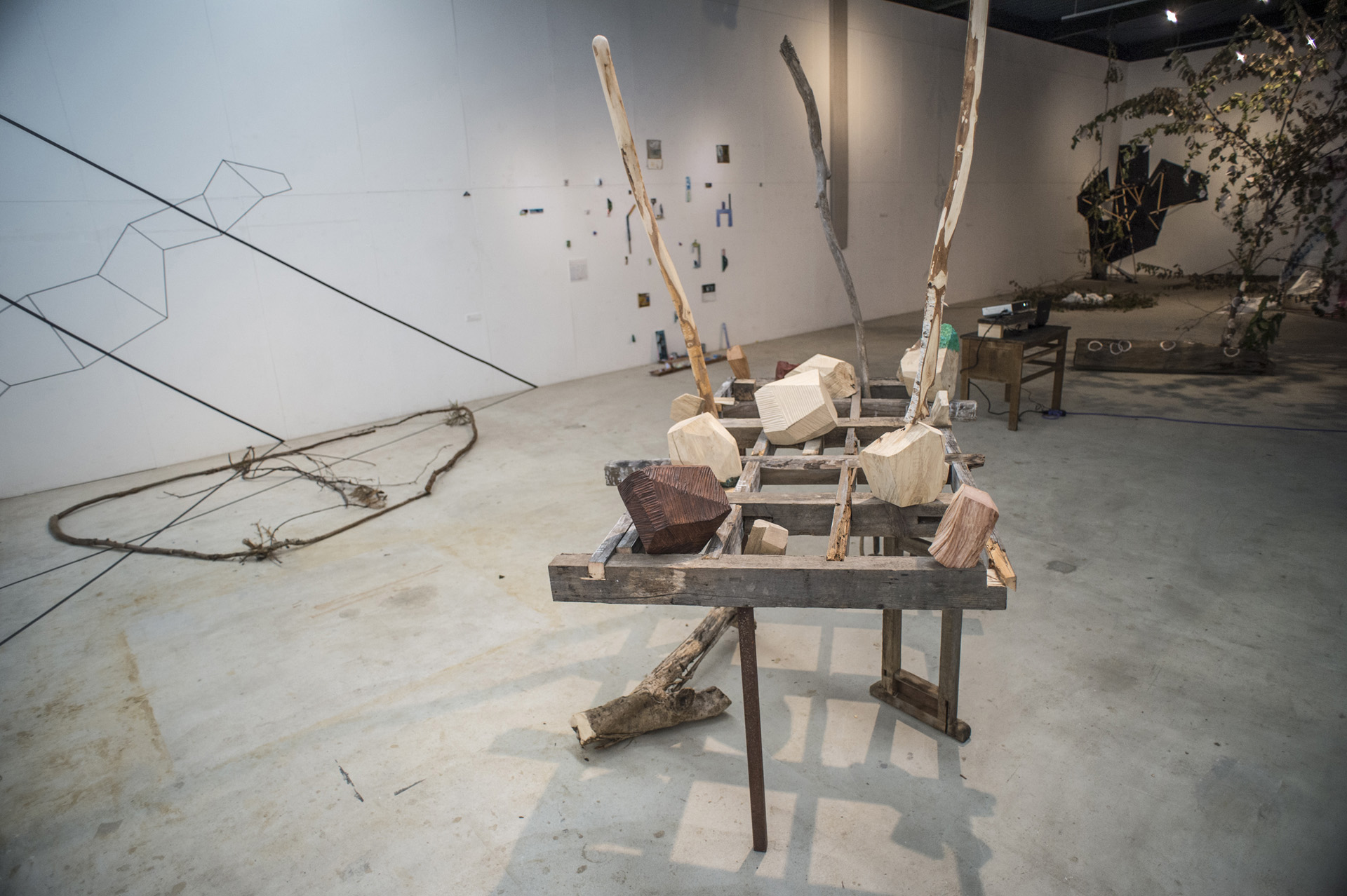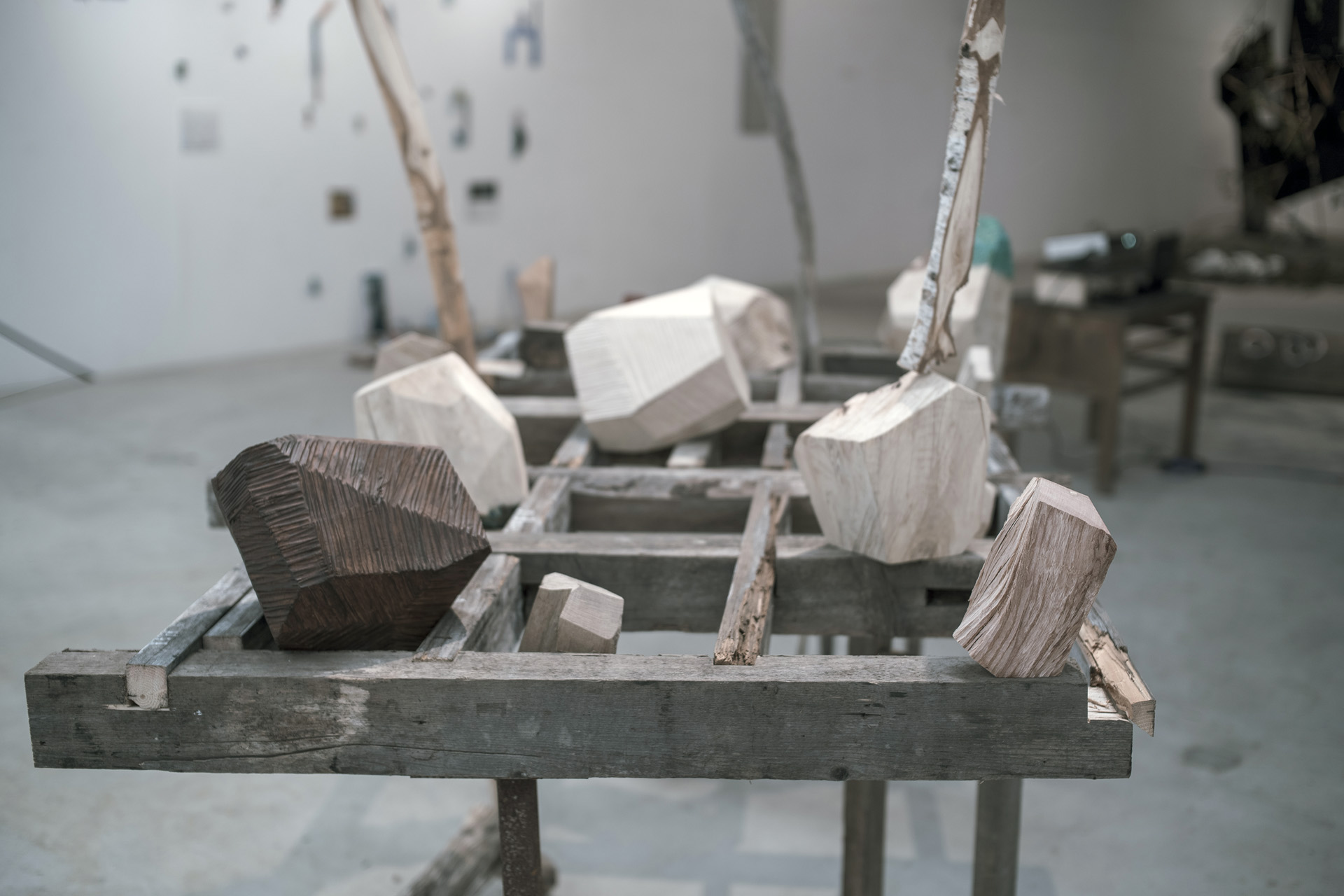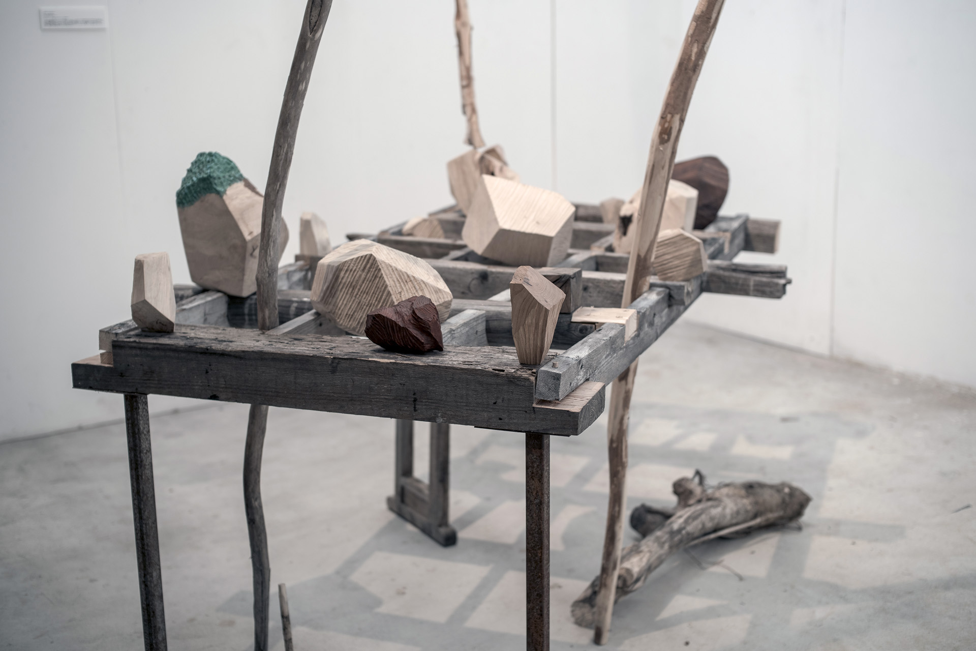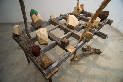 白樺、古材、アクリル絵具、FlatFileモリヤコウジ制作基盤