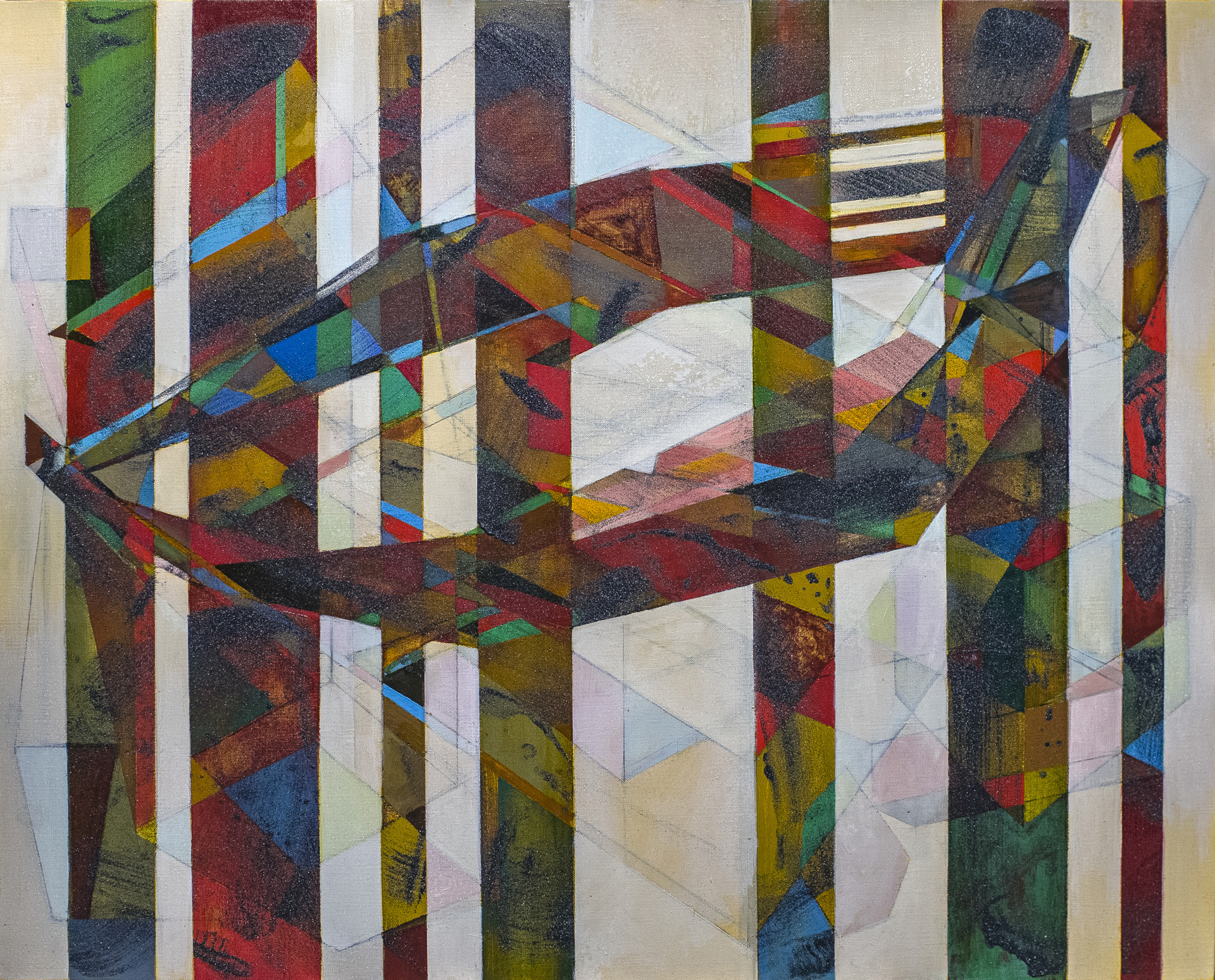 charcoal, silicon carbide, oil on canvas