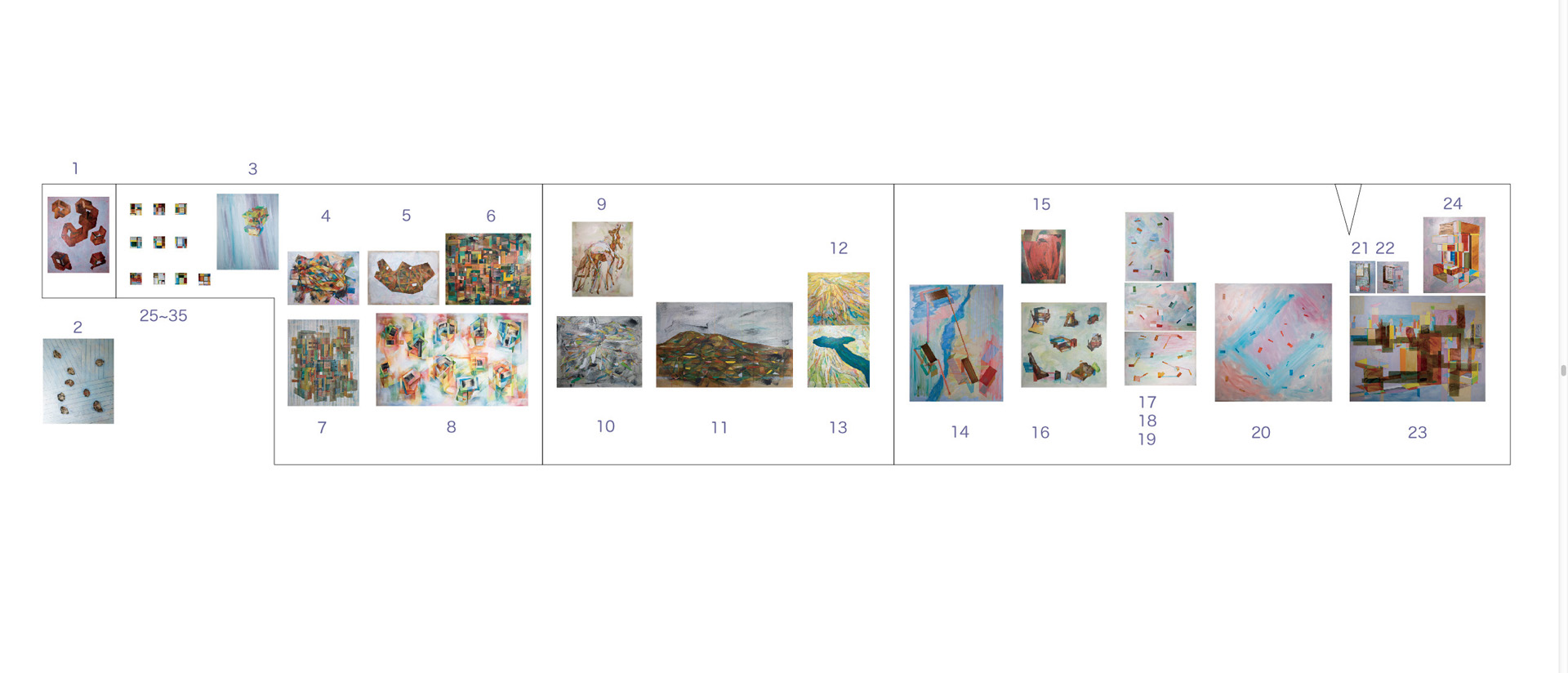 25~35 : 10個のエージング 10×10:KM / カンバスに油彩 / 2022-2023