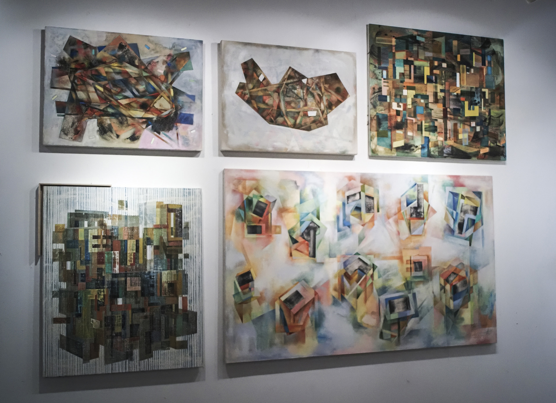 6 : wittgenstein pentomino accumulation / 730 mm wide x 610 mm high / silicon carbide,oil on canvas / 2022-2023