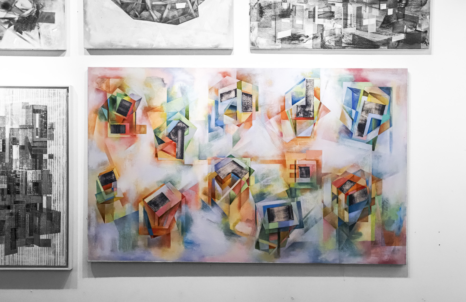 8 : 多面体差動 -欠損彫刻のための平面- / 炭化ケイ素、木炭、ジェッソ、綿布カンバスに油彩 / 2022-2023