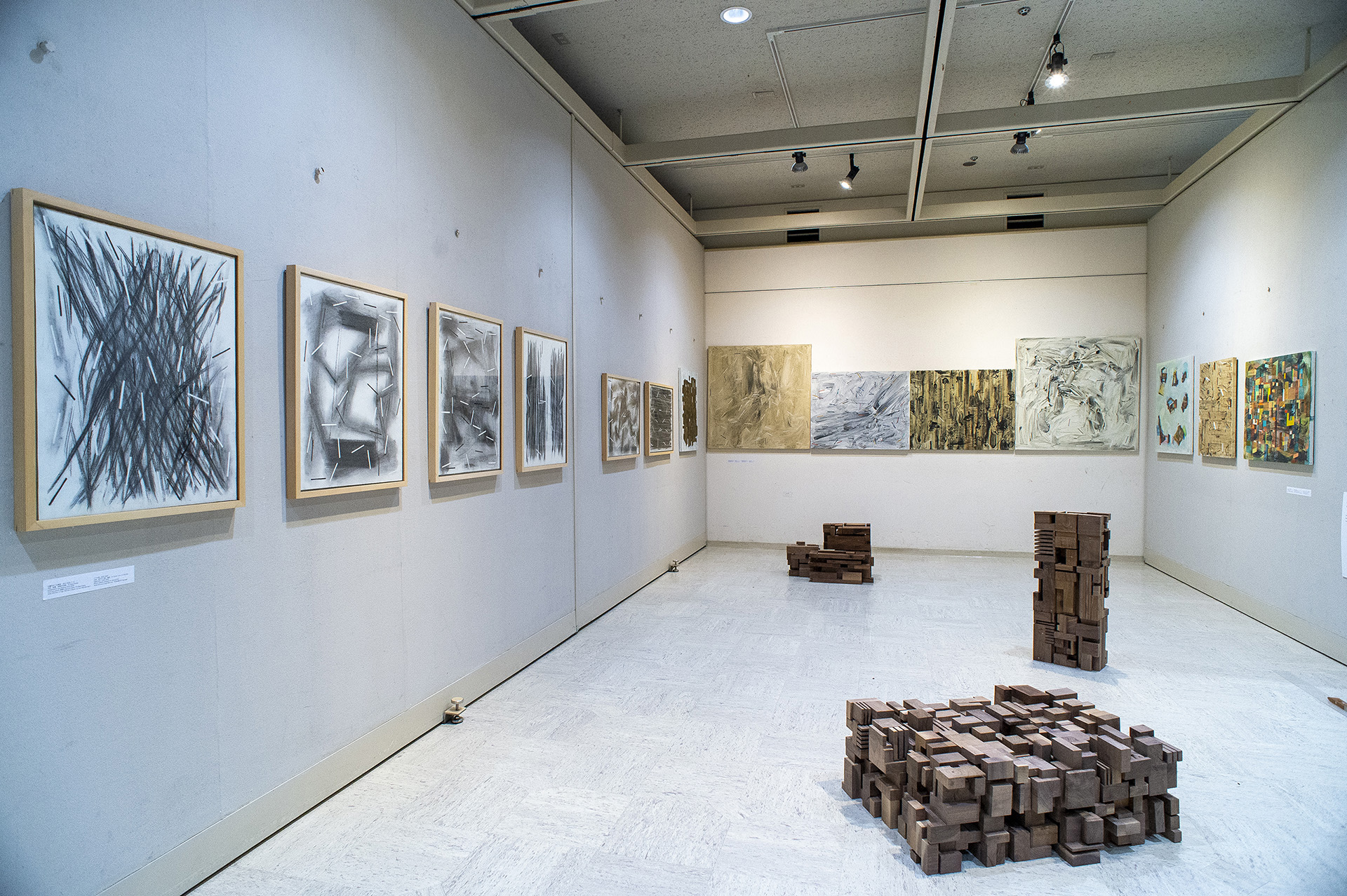 炭化ケイ素、黒胡桃材、杉材、オイルオンキャンバス、F15